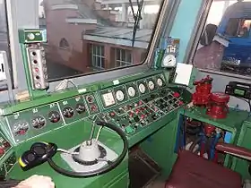 Контроллер машиниста управляет подачей топлива в дизельный двигатель и гидропередачей. В специальное гнездо по центру главной рукоятки контроллера вставляется реверсивная рукоятка, отвечающая за смену направления движения и имеющая три положения (вперёд, нейтраль, назад). Переключение реверса осуществляется электропневматическим методом (управление электрическими сигналами; переключение в механизме гидропередачи — под давлением воздуха). Во избежание повреждения гидропередачи при случайном переключении реверсивная рукоятка блокируется предохранителем[38].