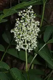 Соцветия растений семейства Адоксовые. Слева направо: Adoxa moschatellina, Sambucus racemosa, Viburnum opulus | ||||||||||