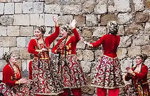 Азербайджанские танцы исполнялись и живущими в Закавказье курдами[57]. Схожие по характеру с яллы танцы живущих по соседству армян и курдов оказали влияние на некоторые виды азербайджанского танца «Яллы» (особенно курдские танцы)[58][59].