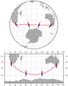 | запад | 270° | 3 ±90° | СЗ или ЮЗ 90° |