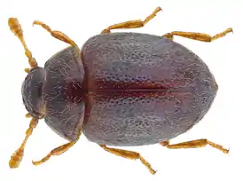 Взрослые жуки в длину не превышают 2 мм, имеют сферическое тело, покрытое короткими, тонкими волосками.[5]