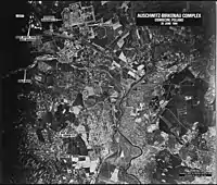 С 1942 года Шпеер руководил также Организацией Тодта, которая строила, снабжала и переоборудовала концлагеря. Под его руководством был расширен Освенцим, крупнейший лагерь смерти. Фото рекогносцировки местности ВВС США, 1944