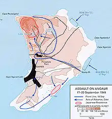 Ангаур был одним из мест сражений в годы Второй мировой войны. На острове до сих пор сохранилось множество американских и японских боевых реликвий. Американские войска вторглись на остров 17 сентября 1944 года. Основной целью США был захват действовавшей на Ангауре взлётно-посадочной полосы, которая использовалась японскими военными, для предотвращения фланговых воздушных ударов по американским войскам, продолжавшим освобождение Филиппин[7]. Сражение, продолжавшееся в течение месяца, закончилось победой американцев.