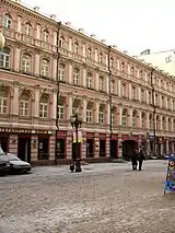В 1897—1899 годах дом был вновь перестроен — втрое увеличен в длину. Фасад дома решён в формах эклектики и оформлен мелким лепным декором. В 1898 году по проекту архитектора И. А. Иванова-Шица в здании были созданы оригинальные витрины[58].