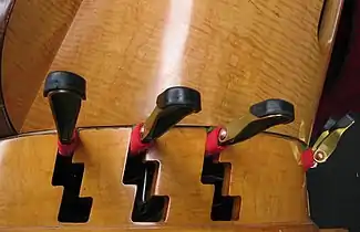 Так как арфа уже и в прежнее время имела значительный звуковой диапазон (пять октав), а места для струн полной хроматической гаммы недостаточно, то на арфе натянуты струны только для извлечения звуков диатонической гаммы. На арфе без педалей можно сыграть только две гаммы — до мажор и ля минор (только натуральный звукоряд). Для хроматических повышений в прежние времена струны должны были быть укорачиваемы прижиманием пальцев у грифа; позже это прижимание стали производить с помощью крючков, приводимых в движение рукой. Такие арфы оказывались крайне неудобными для исполнителей; недостатки эти были в значительной степени устранены механизмом в педалях, изобретённым Якобом Хохбрукером в 1720 году. Этот мастер приделал к арфе семь педалей, действовавших как проводники, которые через пустое пространство бруса проходили к грифу и там приводили крючки в такое положение, что они, крепко прилегая к струнам, производили во всём объёме инструмента хроматические повышения.