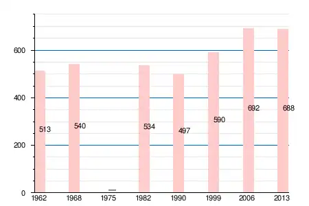 Население коммуны в 2011 году составляло 666 человек[6], в 2012 году — 677 человек[7], а в 2013-м — 688 человек[5].