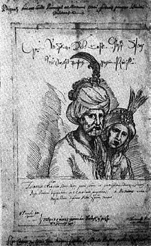 Царь Кахетии Теймураз I в представлении итальянского миссионера Терамо Кастелли. Под властью Теймураза Кахетия была захвачена персидским шахом Аббасом I, а Загем был разграблен в 1615 году.