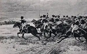 ![]() Британские гусары в битве при Бенавенте, 29 декабря 1808 года. Автор Уильям Барнс Уоллен. | |||