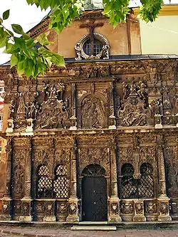 На восточном фасаде каплицы со стороны ул. Галицкой сохранились фресковые портреты основателя часовни Дьёрдя (Ежи-Юрия) и его жены Ядвиги с соответствующими надписями: «Georgius Boim consul Leopoliensis — capellae istius fundator 1617» и «Hedvigiia de Nizniowa, Boim».
