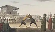 - Цирковая борьба (популяризованная в Российской империи И. М. Поддубным).