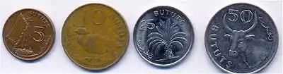 Монеты в 5, 10, 25 и 50 бутутов