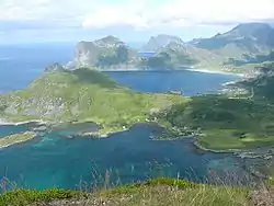 | Уннстад — крупнейшие равнины в Лофотене | Баллстад | Вид на юго-запад на вершину Билитинден | Мост Суннклаккстриамен |