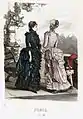 В начале 1870-х в силуэте появились сильные акценты на задней части платья. В Англии, как и во Франции, преобладает общая тенденция к стройным вытянутым силуэтам. Ширина юбки, соответственно, значительно уменьшилась, в то время как сзади обилие ткани и декоративных деталей собрано в складки и драпировки, а у выходных платьев имеется шлейф, наподобие оных у придворных туалетов. Но кроме турнюра носят и юбки, называемые «полонезы», сзади высоко присборенные, — такие, какими их знало рококо.