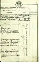 Запись в метрической книге села Каликино о рождении Николая Карельского