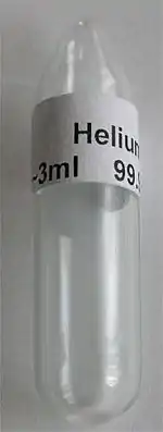 Качественно гелий определяют с помощью анализа спектров испускания (характеристические линии 587,56 нм и 388,86 нм), количественно — масс-спектрометрическими и хроматографическими методами анализа, а также методами, основанными на измерении физических свойств (плотности, теплопроводности и др.)[4].