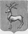 В червлёном (красном) поле серебряный олень, рога, грива и копыта золотые.