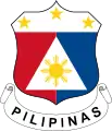 Герб Филиппин был принят в 1940 году. Это щит с солнцем Филиппин посередине, 8 лучей которого представляют 8 областей (Батангас, Булакан, Кавите, Манила, Лагуна, Нуэва Эсиха, Пампанга и Батаан); тремя пятиконечными звёздами, представляющими три островные группы: Лусон, Висайя и Минданао, составляющими Филиппинский архипелаг. В напоминание о колониальном прошлом Филиппин в синей области герба изображён белоголовый орлан — национальный символ Соединённых Штатов, в красной области справа — восстающий лев — символ былого господства Испании.
