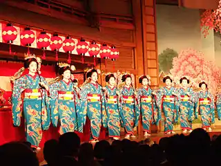 С 1872 года гейши Киото каждый год выступают с танцевальными представлениями, самое популярное из которых проводится в Гион-кобу в апреле, в пору цветения сакуры — Мияко одори, «Танцы старой столицы»[8]. В Гион-хигаси проводят осенний аналогичный фестиваль Гион-одори Изначально все эти фестивали появились для того, чтобы закрепить за Киото статус «культурной столицы» после переноса органов власти в Токио[8].