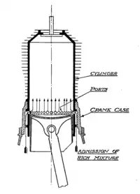 Газораспределительный механизм двигателей Гном, начиная с самого первого Гном Omega, имел впускные клапаны, встроенные в днище каждого поршня. Для необходимой периодической регулировки этих клапанов, работающих при высокой температуре и давлении, на практике требовалась разборка двигателя. Также существовала опасность, при заклинивании клапана, разрушения шатуна с выходом поршня из цилиндра - в случае заднего расположения двигателя с толкающим винтом это означало неминуемое разрушение хвостовой части и хвостового оперения самолёта с последующей гибелью лётчика. В связи с этим в 1913 году компанией Гном был разработан и предложен новый механизм газораспределения, в котором роль впускного клапана, как это происходит в двухтактных двигателях при фонтанной продувке цилиндров, выполнял сам поршень.[1] В этих двигателях всё происходило следующим образом. При движении поршня вниз от верхней мёртвой точки, задолго до нижней, открывался выпускной клапан и в цилиндре создавалось разрежение. Здесь отличий от Гном Omega, и подобных ему двигателей Гном, не было. При дальнейшем движении поршня вниз уже не клапан, а сам поршень открывал 36 отверстий в стенке основания цилиндра, ведущей к картеру, откуда в цилиндр двигателя поступали топливо-воздушная смесь с маслом, и происходила его продувка. Такая схема, за счёт отказа от работающего в тяжёлых условиях клапана в днище поршня, серьёзно повысила надёжность работы двигателя и, за счёт сведения его настроек только к регулировке легкодоступного клапана выпуска, значительно снизила трудоёмкость его обслуживания.