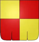 ![]() Écartelé d'or et de gueules, l'écu en bannière | |