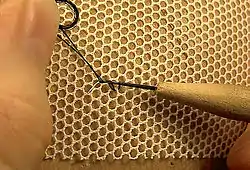 Особая и очень важная отрасль грима — это изготовление постижёрных изделий (постижей). Постижёр занимается изготовлением изделий из волос: бороды, усы, бакенбарды, парики, и прочие всевозможные накладки. Изготовление накладных усов или бород — это очень кропотливый процесс, требующий большого количества времени и аккуратности. Он заключается в том, что с помощью маленького крючка на тончайший тюль навязываются волосы почти на каждую ячейку. Этот процесс называется «тамбуровка» (ventilating, knotting, tamburering). Парики делаются чаще всего с использованием треса — шнура из особым образом сплетённых волос. Трес нашивается рядами на шапочку-основу для парика — монтюр.