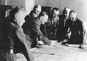 ![]() Совещание в штаб-квартире группы армий «Юг» в Полтаве 1 июня 1942 года | |