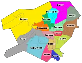 Дамаск, на момент 2017 года делится на 23 района: