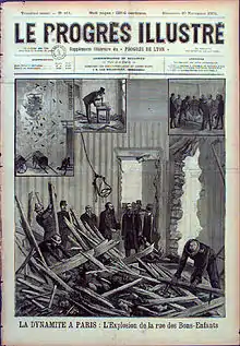 Практически сразу же преимущества динамита оценили и преступники и террористические организации. Попытка подрыва в море пакетбота «Мозель» с целью получения страховки американским моряком Вильямом Кинг-Томассеном — бывшим взрывником-диверсантом армии Конфедерации — закончилась неудачей, когда 11 декабря 1875 года бочка замёрзшего самодельного динамита с часовым механизмом взорвалась при погрузке на судно, убив около 80 человек. Между мартом 1883 года и январём 1885 года в Лондоне произошло 13 динамитных взрывов, организованных экстремистами-сторонниками самоуправления Ирландии из организации «Клан-на-Гейл», включая взрыв в здании Скотланд-Ярда и попытку подрыва Лондонского моста. Русская революционная партия «Народная воля» активно занималась производством динамита для проведения террористических актов[35]. В Европе динамит применялся в тех же целях радикальными анархистами[36][37]. Как сформулировал в 1886 году Огаст Спайс, редактор анархистской газеты в Чикаго, «фунт динамита стоит бушеля пуль» (англ. A pound of dynamite is worth a bushel of bullets)[38].