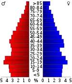 Население округа по возрастному диапазону по данным переписи 2000 года распределилось следующим образом: 25,80 % — жители младше 18 лет, 12,60 % — между 18 и 24 годами, 27,20 % — от 25 до 44 лет, 21,50 % — от 45 до 64 лет и 12,80 % — в возрасте 65 лет и старше. Средний возраст жителей округа составил 34 года. На каждые 100 женщин в округе приходилось 94,10 мужчин, при этом на каждых сто женщин 18 лет и старше приходилось 91,50 мужчин также старше 18 лет.