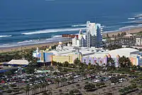 По часовой стрелке слева вверху: Durban CBD, Ushaka Marine World, Казино «Солнечный берег» и развлекательный центр, Мозес Мабида (стадион), en:Inkosi Albert Luthuli International Convention Centre и Durban City Hall. | ||||||||