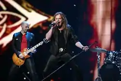 ![]() Ведущие Яана Пелконен и Микко Леппилампи |
