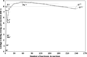 Никель-62, относительно редкий изотоп никеля, имеет более высокую удельную ядерную энергию на нуклон; это согласуется с более высокой массой на нуклон, потому что никель-62 имеет большую долю нейтронов, которые немного массивнее протонов. Лёгкие элементы подвергаются ядерному слиянию, а тяжёлые делению ядра, во время которого их нуклоны связываются всё более плотно, поэтому можно было бы ожидать, что 62Ni будет наиболее распространённым элементом. Однако во время нуклеосинтеза в звёздах конкуренция между фотоядерной реакцией и альфа-процессом приводит к образованию 56Ni, а не 62Ni (56Fe образуется позже по мере распада 56Ni).