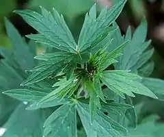 Листья дланевидно-разделённые, часто глубоко, множественно рассечены на заострённые или зубчатые доли.