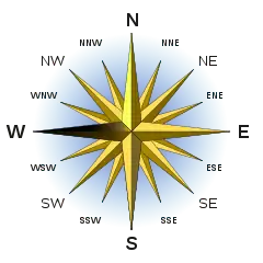 Для того, чтобы идти на запад, используя для навигации компас, необходимо установить азимут 270 °. В дни равноденствия Солнце заходит на западе. Земля вращается с запада на восток. На географических картах западная сторона, как правило, находится слева.