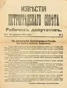 - 1917, февраль — «Извѣстія Петроградскаго Совѣта Рабочихъ Депутатовъ»
