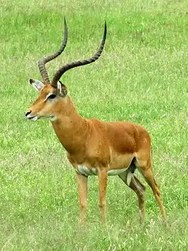 Импа́ла[1][2], или чернопятая антилопа[2] (лат. Aepyceros melampus) — африканская антилопа средней величины. Из-за внешнего сходства с газелями импалу нередко причисляли к последним, однако согласно новейшим исследованиям её более близкими родственниками являются бубалы.