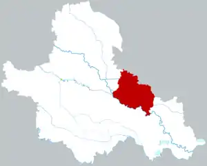 Район делится на 3 уличных комитета, 8 посёлков и 1 волость.