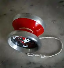 Йо-йо — игрушка, состоящая из двух одинаковых по размеру и весу дисков, скреплённых между собой осью, на которую петелькой надета верёвка. Работает по принципу маятника Максвелла и гироскопа.