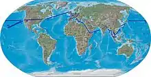В 1881 году король отправился в путешествие по многим странам мира. В этой поездке он хотел изучить вопросы иммиграции и установить международные связи. Калакауа также хотел посмотреть на то, как правят другие правители. В его отсутствие, его сестра и будущая наследница Лилиуокалани управляла государством в качестве регента (Лелеайохоку). Брат короля, которого он ранее назначил наследником, умер в 1877 году. Король сначала побывал в Сан-Франциско, где ему был оказан королевский приём. После этого Калакауа отправился в Японию, где встретился с Императором Мэйдзи. Он продолжил путешествие в Китай, в Сиам, где был принят королём Чулалонгкорном, в Бирму, британскую Индию, в Египет, Италию, Бельгию, Германскую империю, Австро-Венгрию, Францию, Испанию, Португалию, Великобританию, и вновь посетил США, проехав по суше от Атлантического океана до Тихого, на пути домой. Во время этой поездки он встретился с папой римским Львом XIII, королём Италии Умберто I, правителем Египта Тауфик-пашой, с Вильгельмом II, императором Германии, Чулалонгкорном, королём Сиама, с новым американским президентом Честером Артуром и с королевой Великобритании Викторией. Он стал первым из королей, совершившим кругосветное путешествие[3].