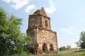 Значительная часть северной стены разрушена. С внутренней стороны на южной и северной стенах имеются 5 ниш вероятно от балок перекрытия. С восточной стороны в верхней части нижнего яруса посредине имеется окно. Размеры: высота — около 20 м, основание — 8,6×8,6 м.