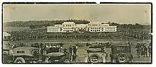 Федеральное правительство переехало в Канберру 9 мая 1927 года, в день открытия временного здания парламента страны[57][58]. Премьер-министр Австралии, Стэнли Брюс (англ. Stanley Bruce)[59], официально поселился в своей резиденции за несколько дней до этого[60]. Запланированное развитие города значительно замедлилось в годы Великой депрессии 1930-х годов и во время Второй мировой войны[61]. Некоторые проекты, например, здания католического и англиканского соборов, так и не были реализованы.
