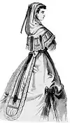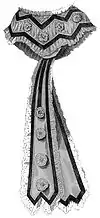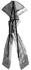 Вид сзади Слева: Косынка «Мария-Антуанетта», с гипюровым кружевом и бархатными лентами (1868). | ||