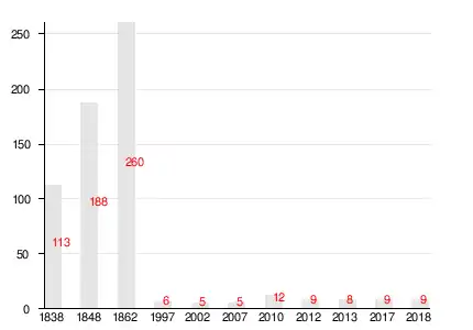 | 1838 | 1848 | 1862 | 1997 | 2006[19] | 2007[20] | 2010[21] |