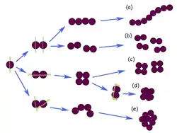 После деления клетки образуют в зависимости от стадии деления структуры, которые являются типичными для определённых видов кокков. Различают: