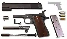 M1911самозарядный пистолет под патрон .45 ACP. Разработан Джоном Мозесом Браунингом в 1908 году (U.S. Patent 984519, 14 февраля 1911 года). Пистолет находился на вооружении лиц офицерского и сержантского состава всех видов вооружённых сил, родов войск и служб ВС США с 1911 по 1985 год, разрешён к использованию военными и полицейскими служащими в качестве личного оружия и в настоящее время.