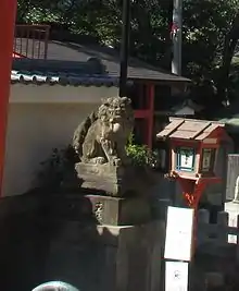 Комаину (яп. 狛犬) — японское мифическое животное, напоминающая смесь льва и собаки. Служат мистическими стражами, расположенными парами при входе в синтоистские храмы, однако могут встречаться и при буддийском храме тоже. Часто сделаны из камня, но также могут быть из бронзы, железа, дерева и даже керамики[1].