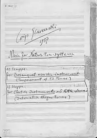 Игра на таких инструментах немыслима без комматической нотации, впервые разработанной Бозанкетом же. Славенски схематически изложил её в преамбуле партитуры и явным образом применил в первой части.
