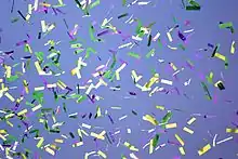 Конфетти́[1][2] (итал. confetti) — разноцветные, обычно бумажные кружочки мелкого размера, неотъемлемый атрибут праздников, в основном, балов, карнавалов, триумфальных шествий, но также дней рождения и свадебных торжеств. Конфетти осыпают друг друга участники празднеств или его сбрасывают сверху.