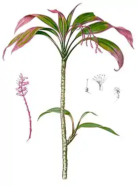 ![]() Кордилина кустарниковая. Ботаническая иллюстрация Франсиско Мануэля Бланко из 3-го издания его книги Flora de Filipinas (ок. 1880) | ||||||||||||