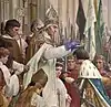 В христианских странах, начиная с V века (Византия, а затем западные королевства) возложение короны на голову монарха обычно производил высший церковный иерарх, но многие монархи (почти все российские, Наполеон I, некоторые британские) только брали у иерарха корону и возлагали её на себя сами.